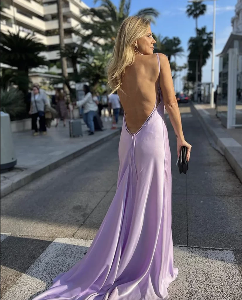 "Se trata de un diseño creado por mi que confeccionó Pablo Bataglia", le confesó a GENTE la actriz quien asistió al festival de cine más importante del mundo con Luis Scalella, su pareja. El vestido lila de Bataglia es de seda natural, con un escote profundo y la totalidad de la espalda al descubierto. Acompañó el outif con sandalias, un chal violeta y un maquillaje súper natural que le dio un tono fresco a su rostro.