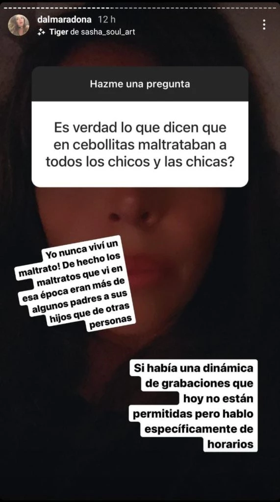 En ese sentido, la hija del Diez se diferenció de Yacuzzi al asegurar que ella jamás recibió maltrato en aquella época. "¿Es verdad lo que dicen que en Cebollitas maltrataban a todos los chicos y a las chicas?", le preguntó un seguidor en las historias y ella no dudó en aclarar los tantos.