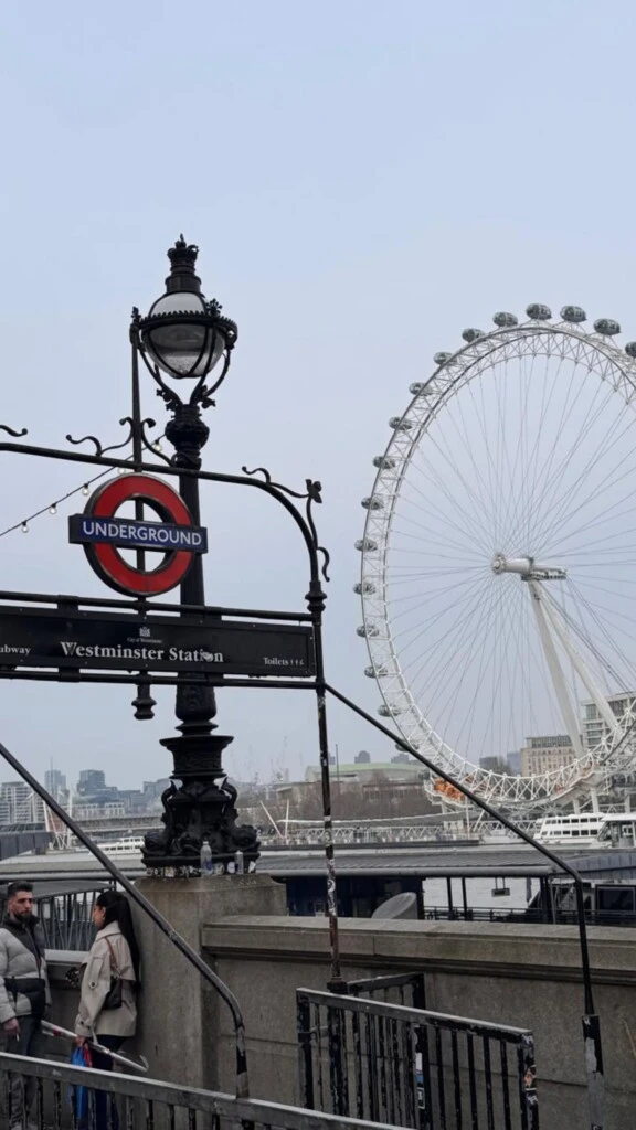 También hubo tiempo para recorrer el London Eye, cuya estructura imponente apareció en una de las imágenes junto a los tradicionales carteles del Underground, símbolo indiscutido de la ciudad.