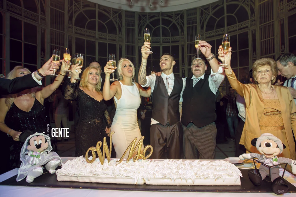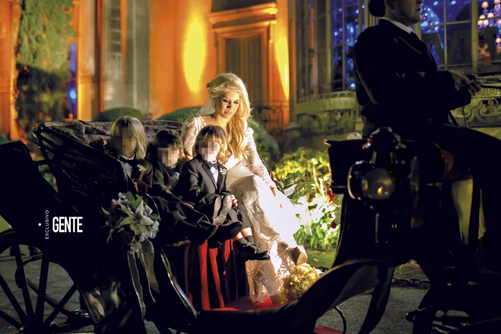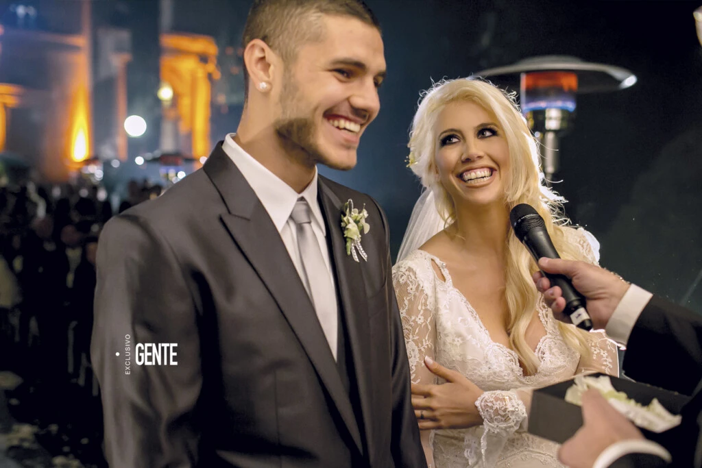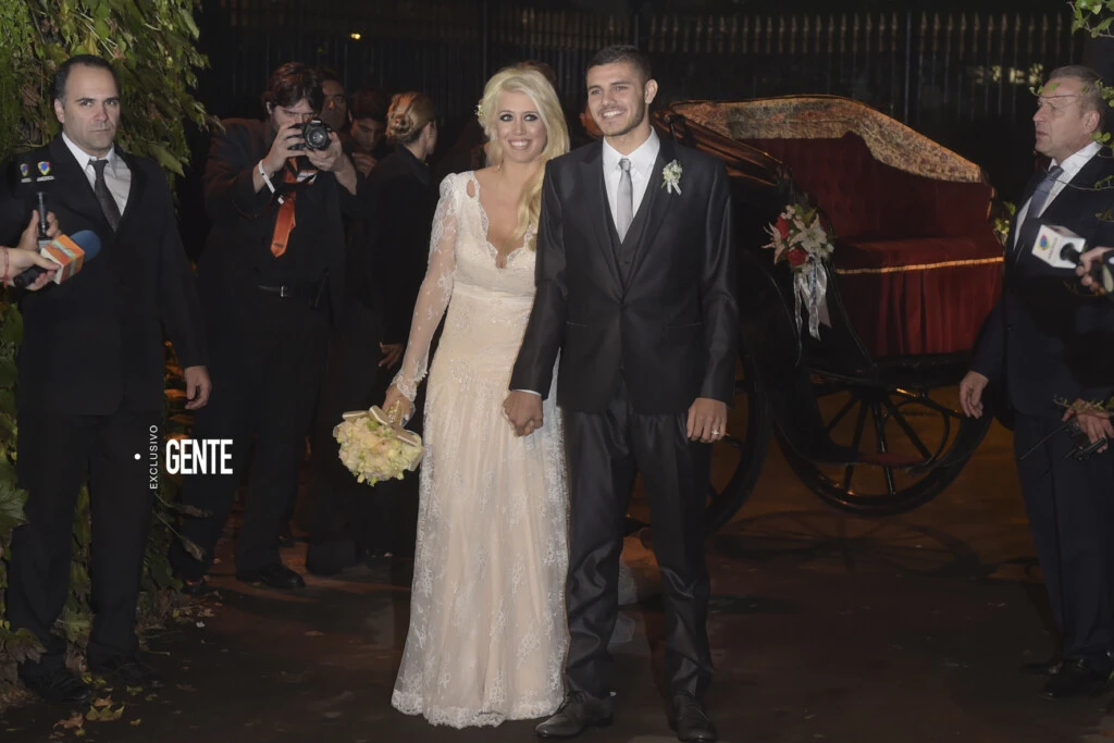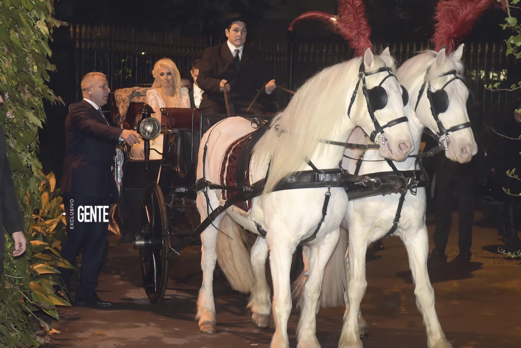 Poco después de las 21 hs, Wanda llegó en un carruaje de época tirado por dos caballos blancos con penachos de plumas rojas en sus cabezas. La acompañaban sus tres hijos: Constantino, Valentino y Benedicto (que por aquel entonces tenían 5, 3 y 2 años).