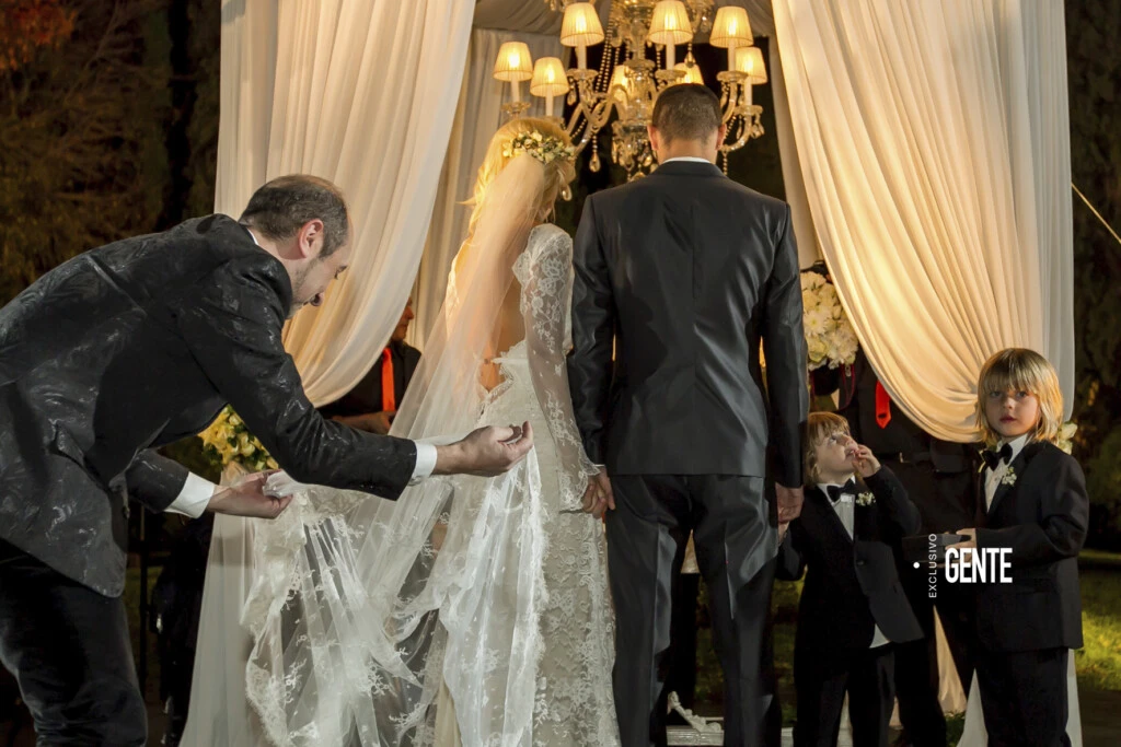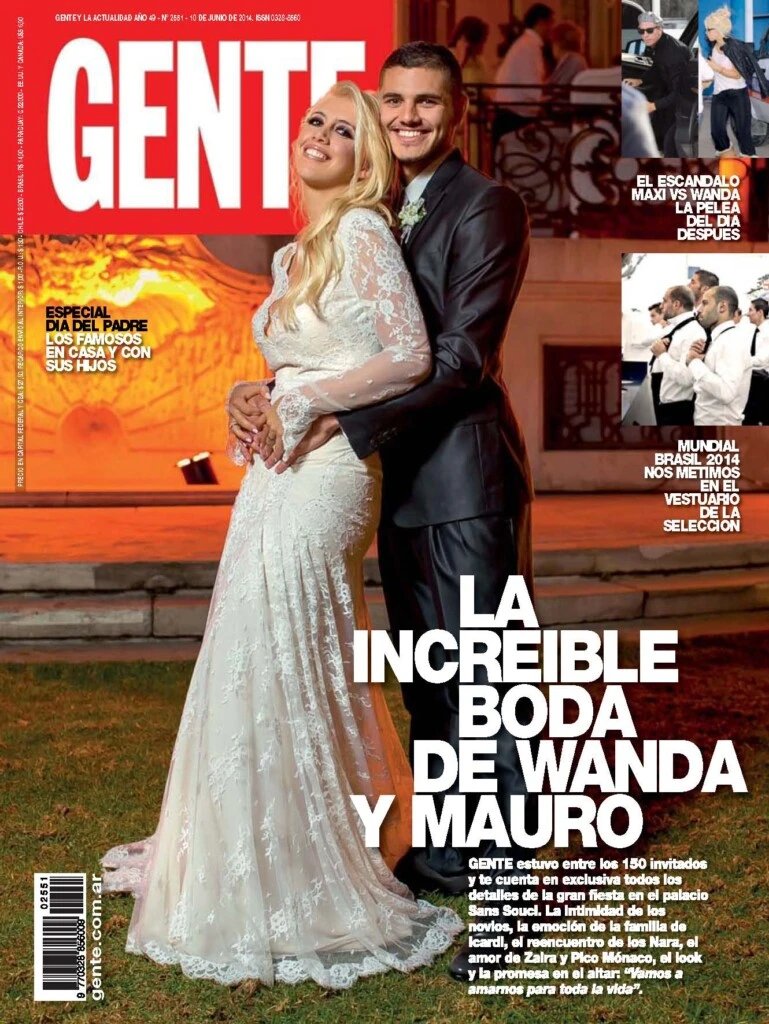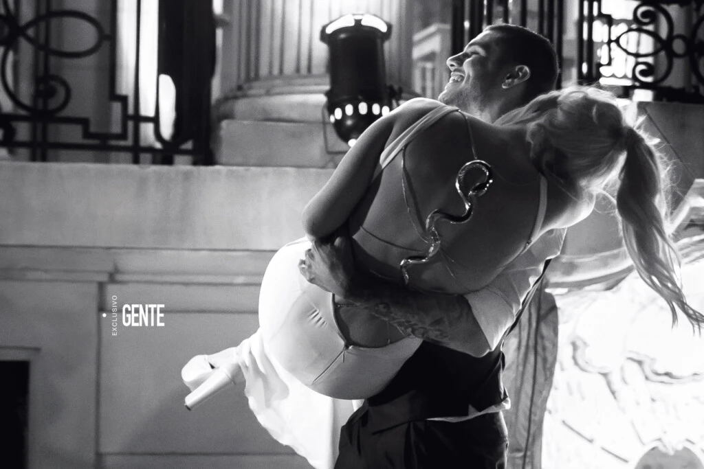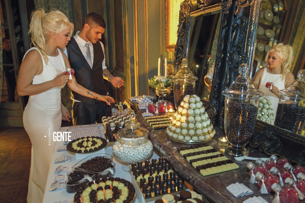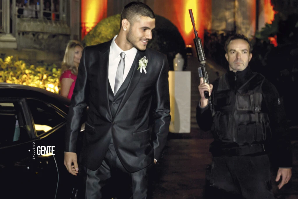 Poco después de las 21 hs, Wanda llegó en un carruaje de época tirado por dos caballos blancos con penachos de plumas rojas en sus cabezas. La acompañaban sus tres hijos: Constantino, Valentino y Benedicto (que por aquel entonces tenían 5, 3 y 2 años).