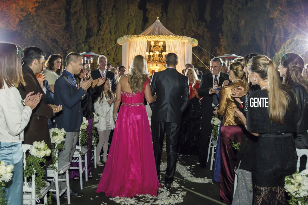 Luego, caminó sobre una alfombra decorada con pétalos hacia el gazebo en el que se llevaría a cabo la ceremonia. Concluido su arribo, los invitados se preguntaron: “¿Y el novio dónde está?”.