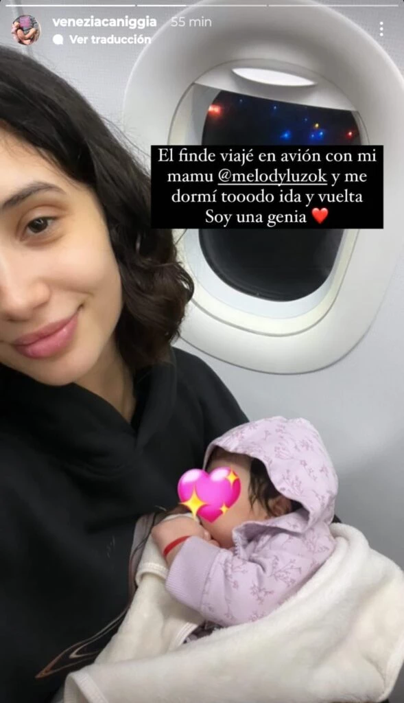 En sus historias de Instagram, Melody posteó una imagen junto a su hija y contó: "El finde viajé en avión con mi mamu y me dormí tooodo ida y vuelta. Soy una genia", escribió.