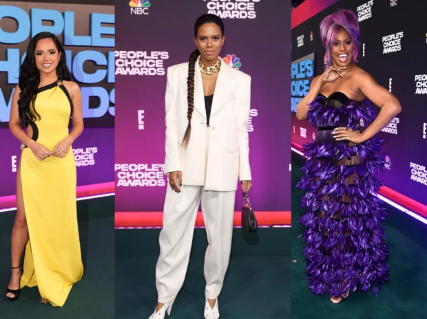 Laverne Cox, lució un vestido con transparencias y plumas violetas. Haciendo juego lució un peinado recogido lila. La actriz, conocida por su participación en la serie norteamericana Orange Is The New Black, fue la anfitriona de la alfombra roja de los premios.