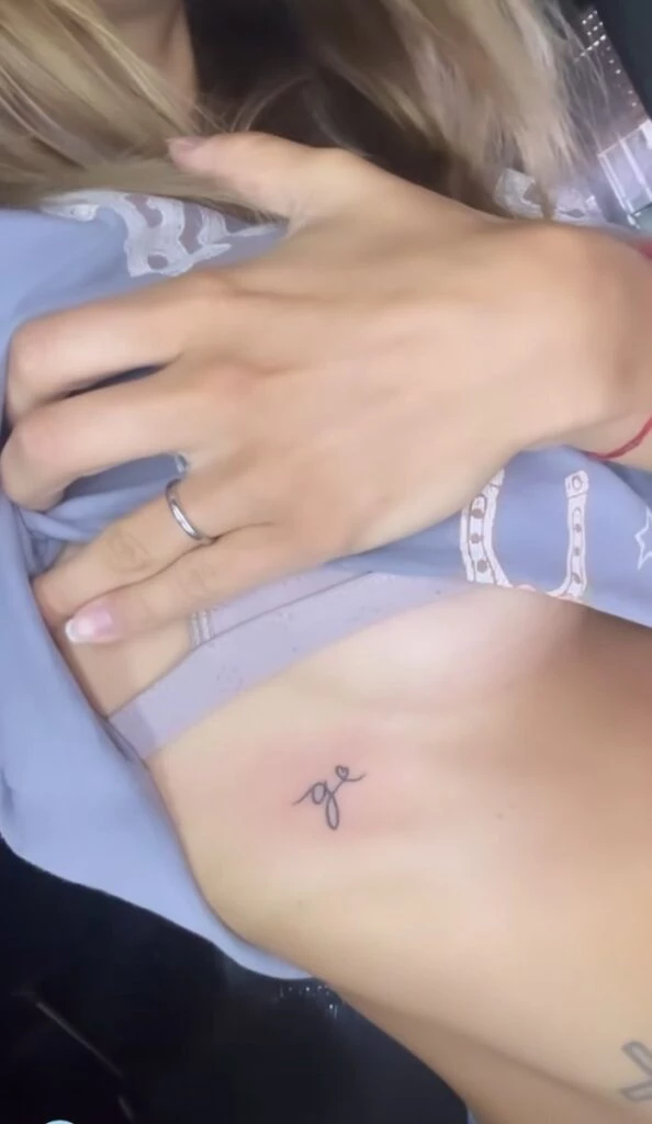 Minutos más tarde la modelo mostró cómo quedó el tatuaje que se hizo con la inicial de su futuro marido sobre sus costillas.