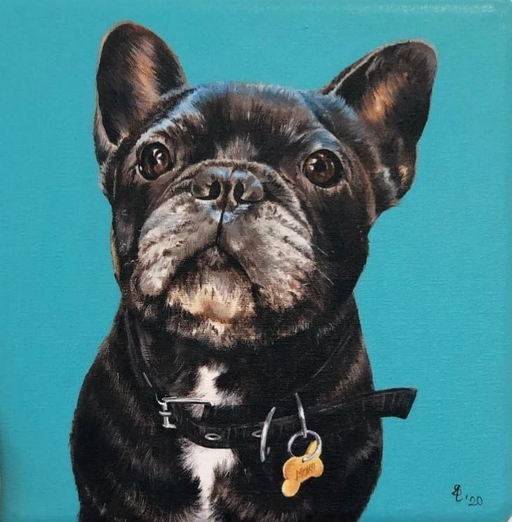 Además, la conductora y flamante mamá también recibió un cuadro de Moro, su otro bulldog francés.