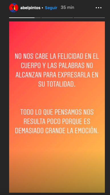 “Es verdaderamente muy emocionante y sin dudas lo más grande que me pasó en la vida. Estoy parado ante semejante bendición, expresión de amor y muy decidido a dar lo mejor de mi. Es un tiempo de mucho aprendizaje que me ha cambiado la vida y estoy muy feliz”, dijo Abel en una de sus más recientes entrevistas.