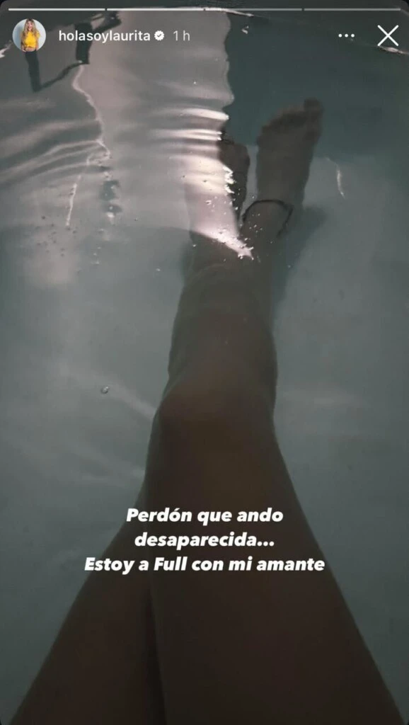 Luego de que se hablara de ella durante varios días, Laurita volvió a las redes sociales con un irónico mensaje. Es que, la bailarina subió una historia a su cuenta de Instagram en la que se ve que se está dando un baño de inmersión y escribió: "Perdón que ando desaparecida... estoy a full con mi amante".