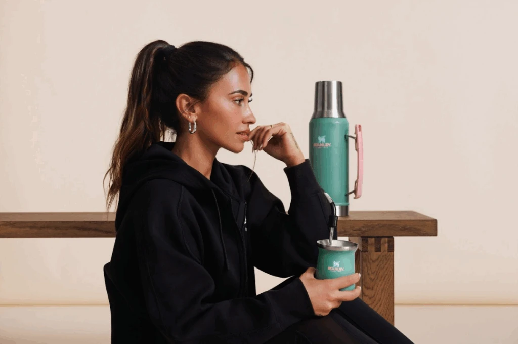 Este 13 de enero (¡hace solo días!) se lanzó "Stanley 1913 x Anto", una colaboración de diseño en la que la rosarina curó cada detalle. La sorprendente colección de la marca estadounidense presenta piezas como "el Termo Mate System", "el Maté Clásico" y "el vaso Quencher" en un tono que fue creado especialmente para ella: el "Antonela’s Green" (verde Antonela).