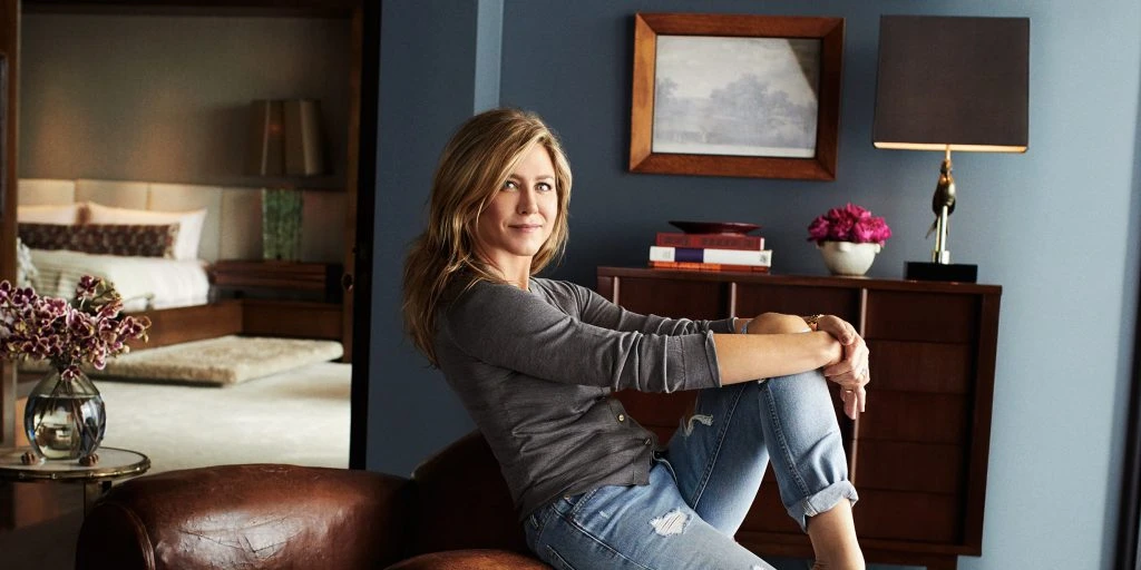 La actriz contó que cuando la compró, el arquitecto Frederick Fisher la terminaba de renovar por completo pero no era de su gusto."Había una secuencia de entrada muy dramática que llevaba a una gran puerta pintada en rojo chino", recuerda. "Estéticamente, era lo más alejado a lo que quería, pero de inmediato tuve la sensación de que podría funcionar. Es difícil de describir, pero sentí una conexión ". Así que pidió ayuda al diseñador de interiores Stephen Shadley, con quien ya había colaborado en su casa anterior de Los Ángeles, para preservar el espíritu modernista del esquema original mientras suavizaba algunas de sus líneas con acabados y materiales orgánicos. En esta casa vivió durante algún tiempo con su último marido Justin Theroux del que se separó en 2018.