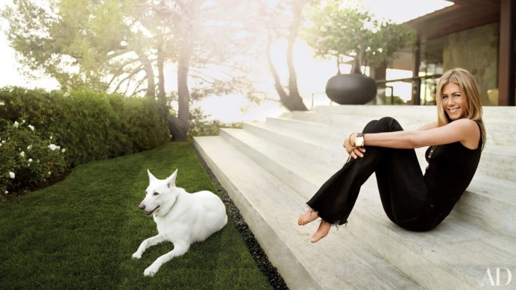 Justamente ese año, tras la separación, Jennifer abrió su hogar a la publicación Architectural Digest, donde mostró su mansión, que estaba compartiendo con sus dos perros en ese momento. Para la tapa de la revista, la ex actriz de Friends está posando en una silla colgante de mimbre negro, adornada con piel sintética y cómodos almohadones con abundante vegetación en el fondo. La piel sintética y las plantas parecen ser un tema en toda su casa, con Jennifer haciéndose cargo de decorar los ambientes con modernas pantallas de iluminación y adornando las paredes.