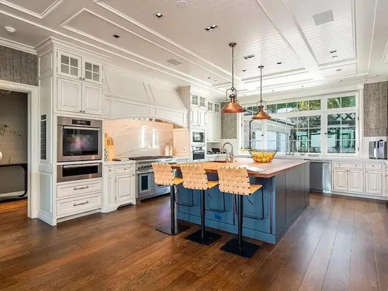 La mansión cuenta con un diseño arquitectónico moderno y elegante, con amplios espacios abiertos y grandes ventanales que permiten la entrada de luz natural. Cuenta con un total de 6 habitaciones, 10 baños, dos estudios, una sala multimedia profesional, una enorme cocina, una sala de juegos y una casa de invitados de 270 metros cuadrados que incluye dos dormitorios, cuatro baños y un gimnasio.