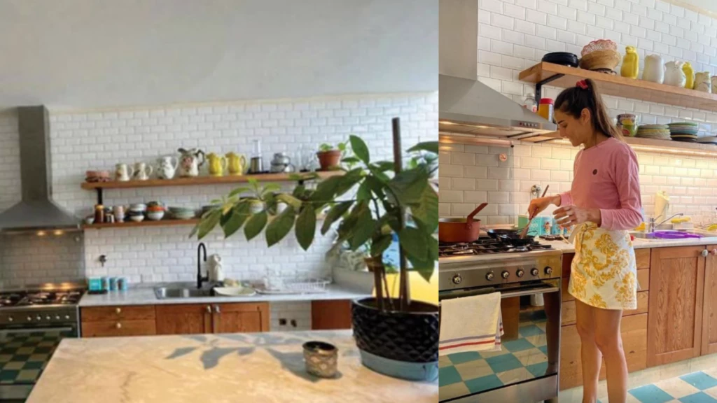 El lugar preferido de Juana es su cocina. Cuenta con una bella mesada en el centro, alacenas de madera, piso de color blanco y celeste, cocina de alta gama. Los azulejos blanco la hacen super amplia y rebota la iluminación del exterior.