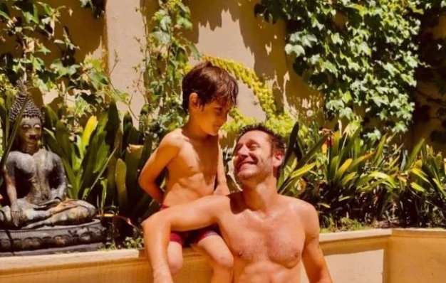 La mansión fue alquilada por el actor chileno con la decoración y muebles incluidos. Uno de sus sectores preferidos es la flamante biblioteca que está detrás de la escalera principal. Allí Benjamín agregó imágenes familiares y suele posar con sus hijos.