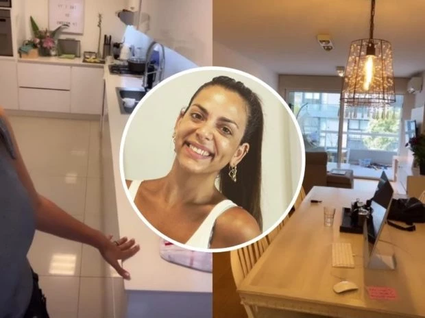 “El lugar que más amo de mi casa, que es mi cocina, que la hice peso a peso, la disfruto todos los santos días. Es el lugar donde me siento plena, feliz, cocino, me divierto, tomo mate, todo”, comentó orgullosa mientras mostaba el espacio en detalle. De esta forma, permitió conocer el diseño minimalista que eligió, que se complementa con una mesada en forma de L y alacenas a medida, además de una barra desayunadora con vista al balcón. En cuanto a la paleta de colores, el blanco es el color principal, que sobresale con las luces led que incluyó. Además, cuenta con horno empotrado y mucho espacio para los demás electrodomésticos.