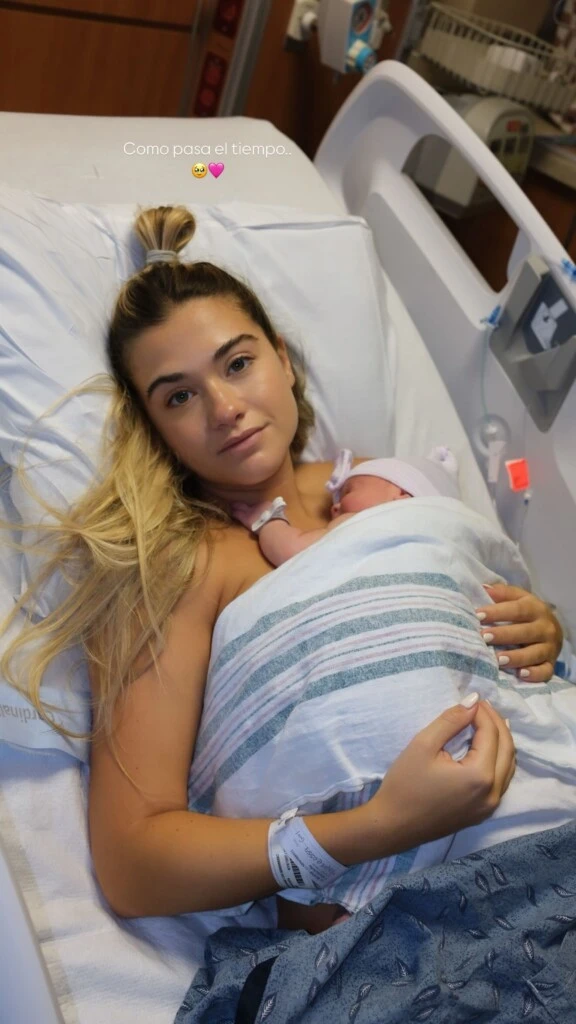 A su vez, subió un recuerdo del día en que nació Olivia, donde se la veía a Sofía en la cama del sanatorio con la bebé sobre su pecho. "Cómo pasa el tiempo", escribió la mujer del Kun, junto a dos emojis, una carita emocionada y un corazón rosa.