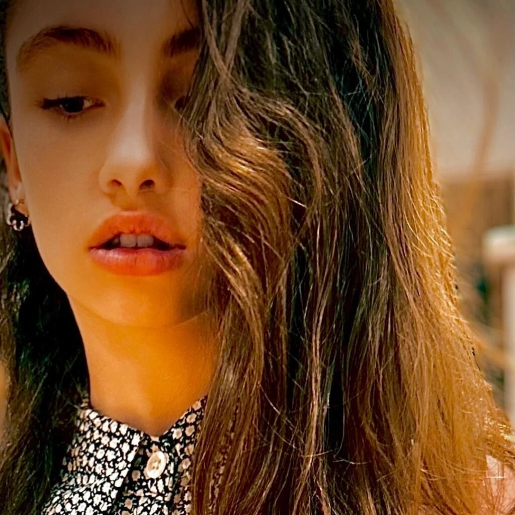 La adolescente compartió dos fotografías en el mismo post donde sale de cerca su rostro -que fue comparado muchas veces con el de Lali Espósito-: una en blanco y negro donde aparece mirando hacía abajo y otra, a color. En ambas aparece con la misma camisa floreada de botones, lista para la primavera.