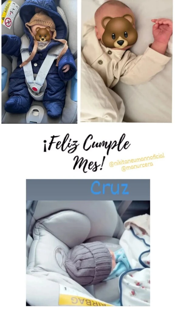 Desde que nació Cruz, Nicole y Manu decidieron no mostrar su cara. Es por eso que todas las fotos que circulan en las redes sociales se puede ver al niño con un emoji de oso en su rostro.