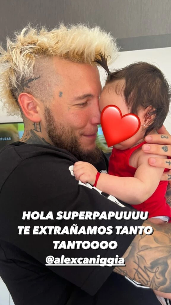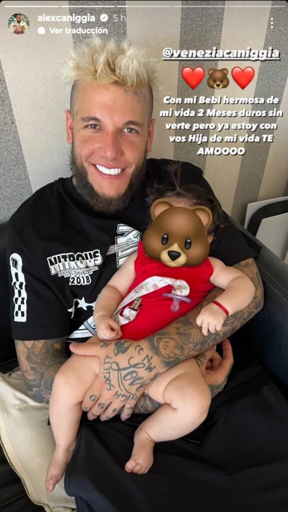 Al compartir el video en sus historias de Instagram, el influencer escribió: "Las amo amores de mi vida". Y más adelante posteó una foto sentado con Venezia en sus brazos, aunque tapando su rostro como lo decidieron desde que nació, y puso: "Con mi bebi hermosa de mi vida. 2 meses duros sin verte pero ya estoy con vos hija de mi vida te amo", expresó feliz del reencuentro.