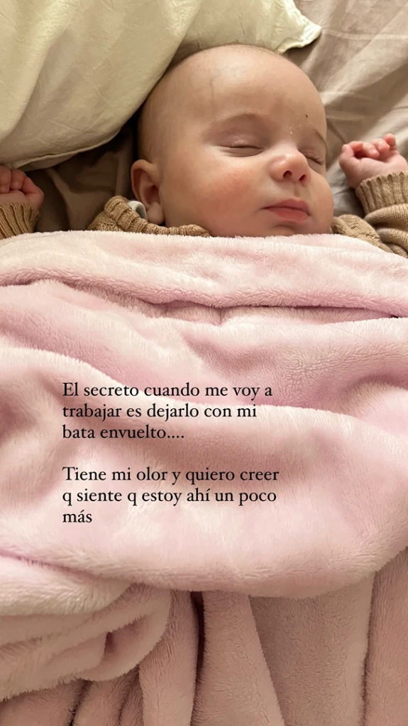 “El secreto cuando me voy a trabajar es dejarlo envuelto con mi bata… Tiene mi olor y quiero creer que siente que estoy ahí un poco más”, aseguró la también influencer junto a una tierna foto de Galileo durmiendo.