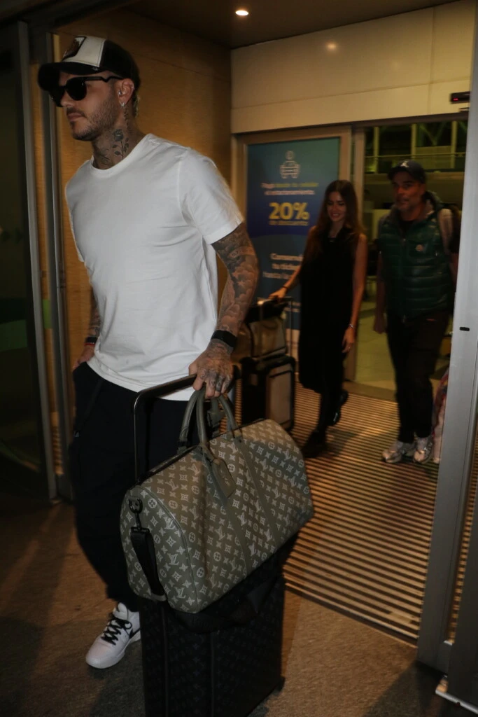 Fiel a su estilo, el ex de Wanda Nara se negó a hablar con la prensa y se mostró en todo momento muy serio y atento únicamente a su pareja y todas las valijas que debieron acomodar en la súper camioneta que los esperaba.