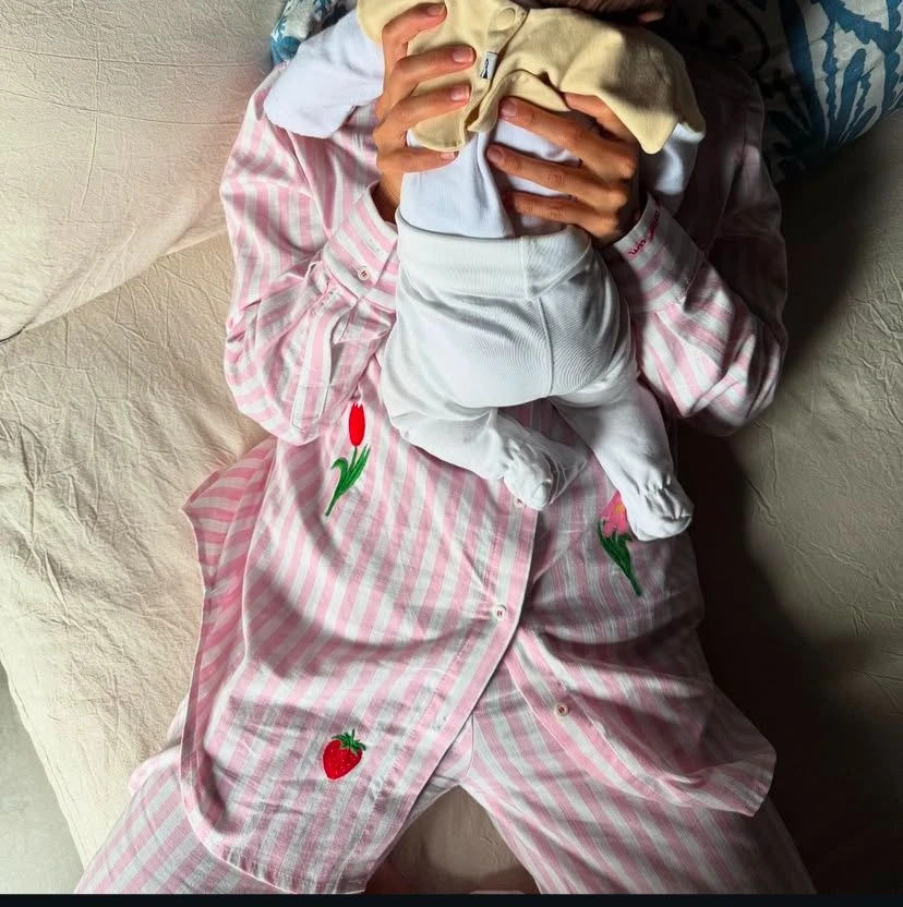 Horas antes del festejo, Calu había mostrado cómo se preparaba con Bee, su hija más chica. La modelo optó por no mostrar su rostro, pero mostró su mini look: pantalón y body de algodón blanco.