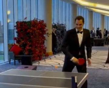 A un día de jugar su último partido, Roger Federer se animó a jugar un ping pong de traje con el Peque Schwartzman