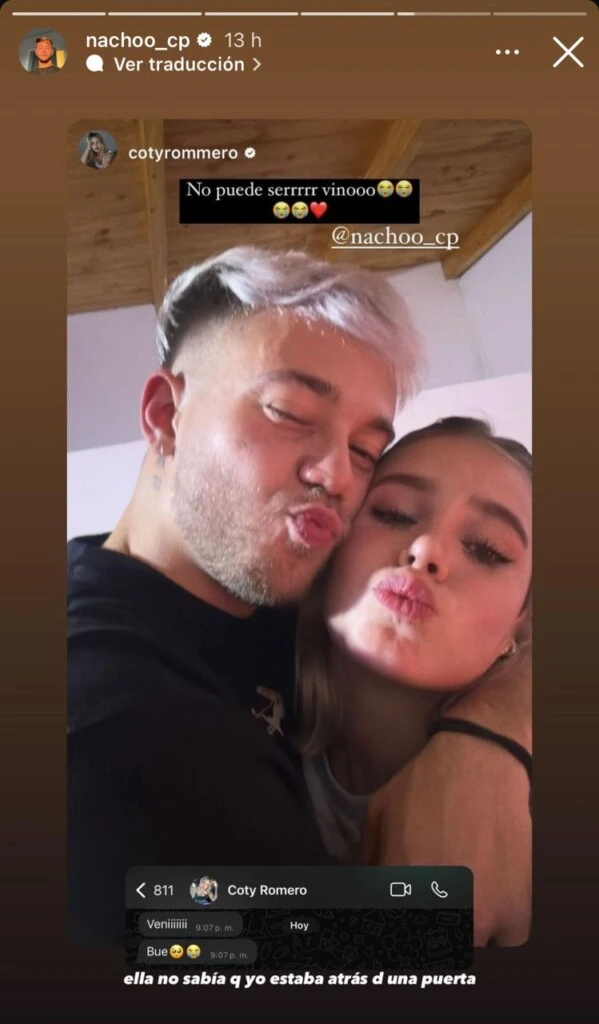 A través de sus historias de Instagram, Coty había estado compartiendo detalles de su día a día en Caa Catí, Corrientes, con su familia. Sin embargo, este sábado a la noche, sorprendió al subir una tierna historia con Nacho, en la que comentaba, junto a emojis de emoción y un corazón: "No puede ser, vino".