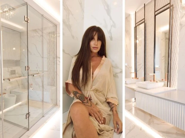Otro elemento clave en la renovación fue el revestimiento, para el cual optó por un diseño moderno y elegante para pisos y paredes que realmente realza el espacio. "¿LES GUSTA?", le preguntó a sus seguidores, quienes no dudaron en dejarle mensajes de admiración por las grandes ideas de diseño que supo plasmar en su baño principal y también en el de visitas.