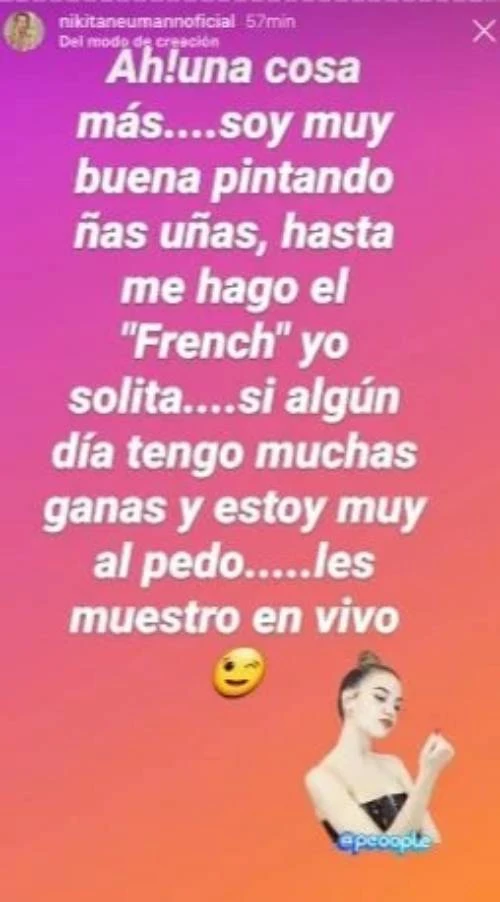 Y sentenció en su red social, con suma ironía: "Ah, una cosa, soy muy buena pintándome las uñas, hasta me hago el 'french' yo solita. Si algún día tengo muchas ganas y estoy muy al pedo, les muestro en vivo".