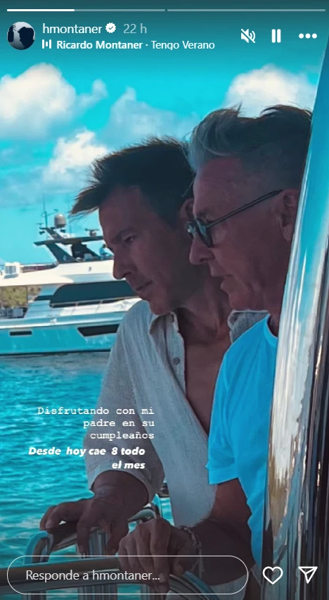 Durante el festejo en el barco, Ricky Montaner compartió un video en sus historias, en el que comentó: "Estoy con el cumpleañero. Papi, te amo, feliz cumpleaños, te adoro. Feliz día, gozando".