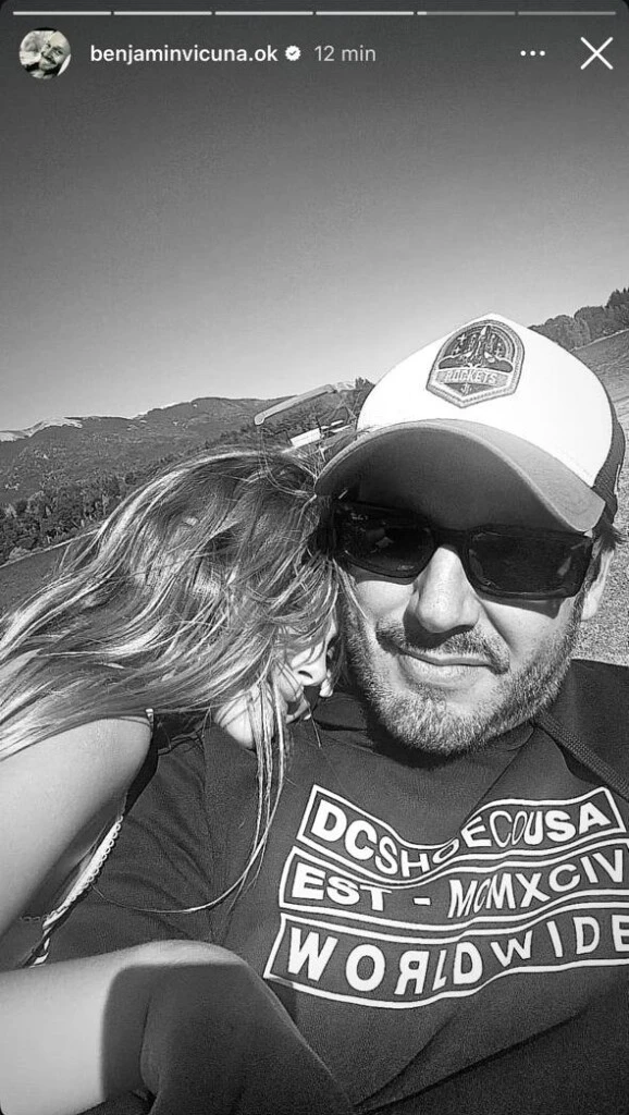 A través de las redes sociales, Vicuña comenzó a compartir algunas postales de su viaje con Magnolia y Amancio, donde se podía ver que se están divirtiendo mucho juntos. En primer lugar, subió una historia en blanco y negro, donde se la ve a su hija menor nadando en una pileta, con un lago y las montañas de fondo.