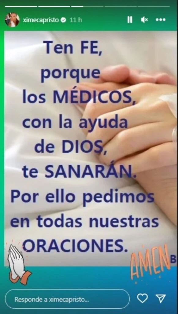 También Ximena Capristo le dedicó unas palabras a su amiga: "Ten fe porque los médicos con la ayuda de Dios te sanarán. Por ello pedimos en todas las oraciones. Amén", compartió Capristo, a través de una historia de Instagram. De hecho, tanto Ximena como Gustavo Conti visitaron varias veces a Luna en el Hospital Italiano.