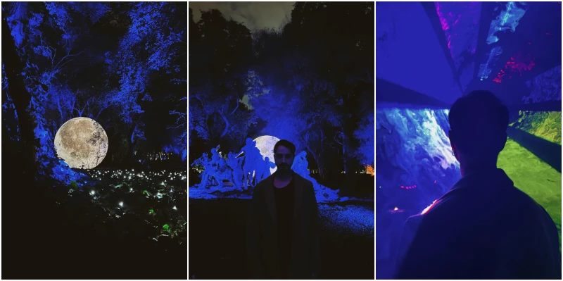 La cita fue en el Secret Garden que se armó en las noches en el Jardín Botánico de Palermo. Allí hay mapping, luces, instalaciones y diferentes rincones que ayudan a reencontrarse con uno de los pocos pulmones verdes de la Ciudad de Buenos Aires.