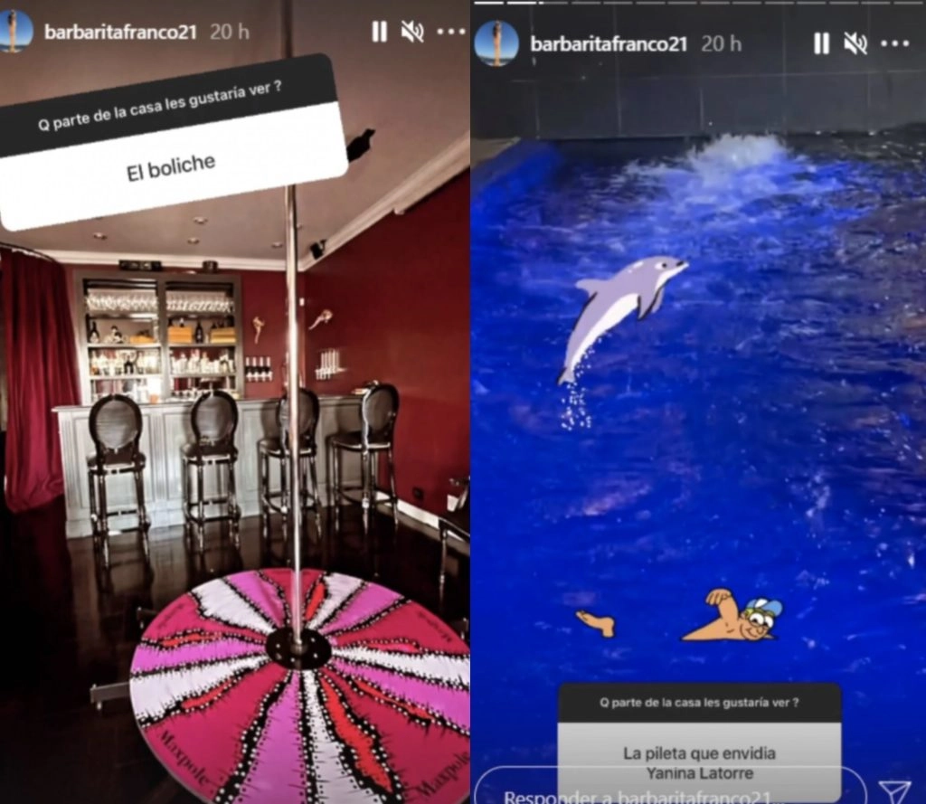 Para empezar, Franco mostró el "boliche" que tienen en la propiedad que se destaca por contar con un caño para realizar pole dance y también una imponente barra para deleitarse con tragos.