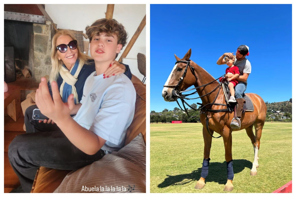 Esta vez, a diferencia del viaje que hicieron hace algunas semanas a un imponente palacio de Entre Ríos, logró reunir a todos sus hijos. Bautista posó con su abuela y Benjamín se subió a montar a caballo con Amancio, el más pequeño de los Vicuña.