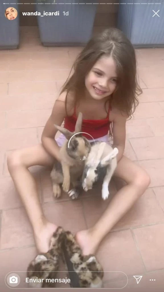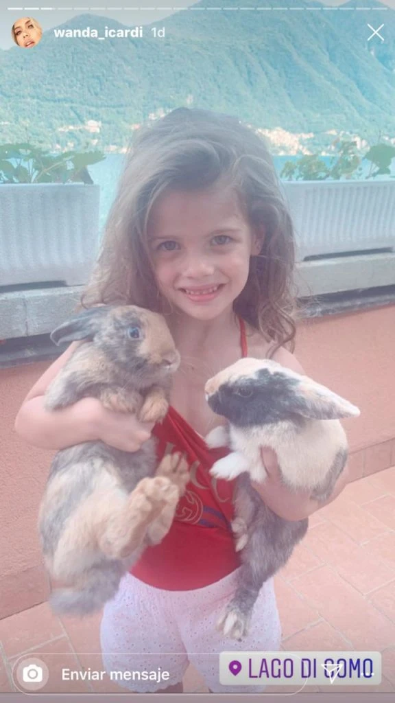 Disfrutando del verano europeo en Milán, Wanda no se priva de ostentar su estilo de vida. Además de regalarle un pony a Francesca, también mostró a su hija con dos conejos e hizo diversas historias mostrando a los dos ponys de las niñas al borde de la pileta.