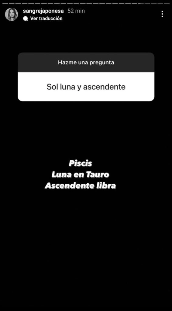 "Sol, luna y ascendente", le consultó uno de los usuarios. A lo que ella respondió: "Piscis, Luna en Tauro y Ascendente en Libra". Si bien no compartió la información completa de su carta natal, hizo público tres datos cruciales de los signos y los astros en el día de su nacimiento.