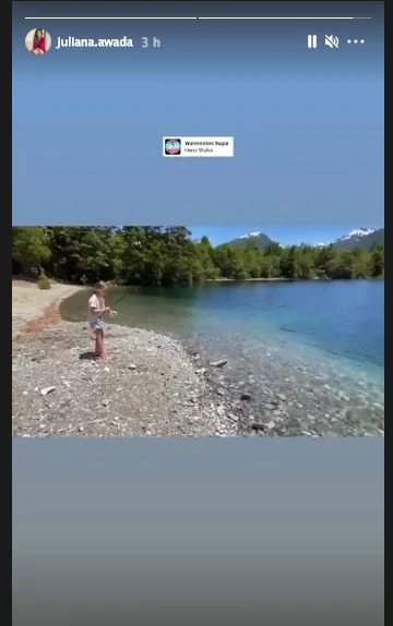 En sus historias, Awada también mostró a la pequeña Antonia pescando en uno de los majestuosos lagos del lugar, muy divertida intentando sacar algún pez, y también posando dentro del agua.