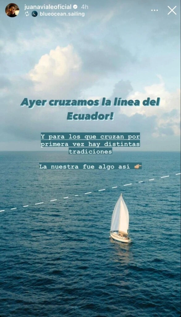 "Ayer cruzamos la línea del Ecuador. Para los que la cruzan por primera vez hay distintas tradiciones. La nuestra fue algo así", adelantó la conductora junto a una fotografía desde arriba de "Lola", el barco en el cual se traslada.