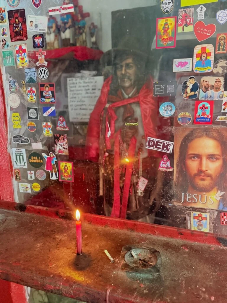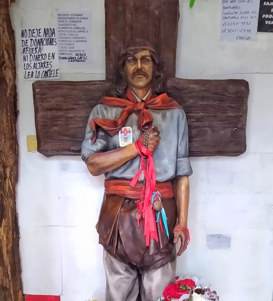 El altar de Chacarita, que siempre está rodeado de cintas rojas, banderas, velas encendidas, cigarrillos y botellas de vino, venera a Antonio Mamerto Gil Núñez, el gaucho correntino del siglo XIX al que le dejan esas ofrendas.