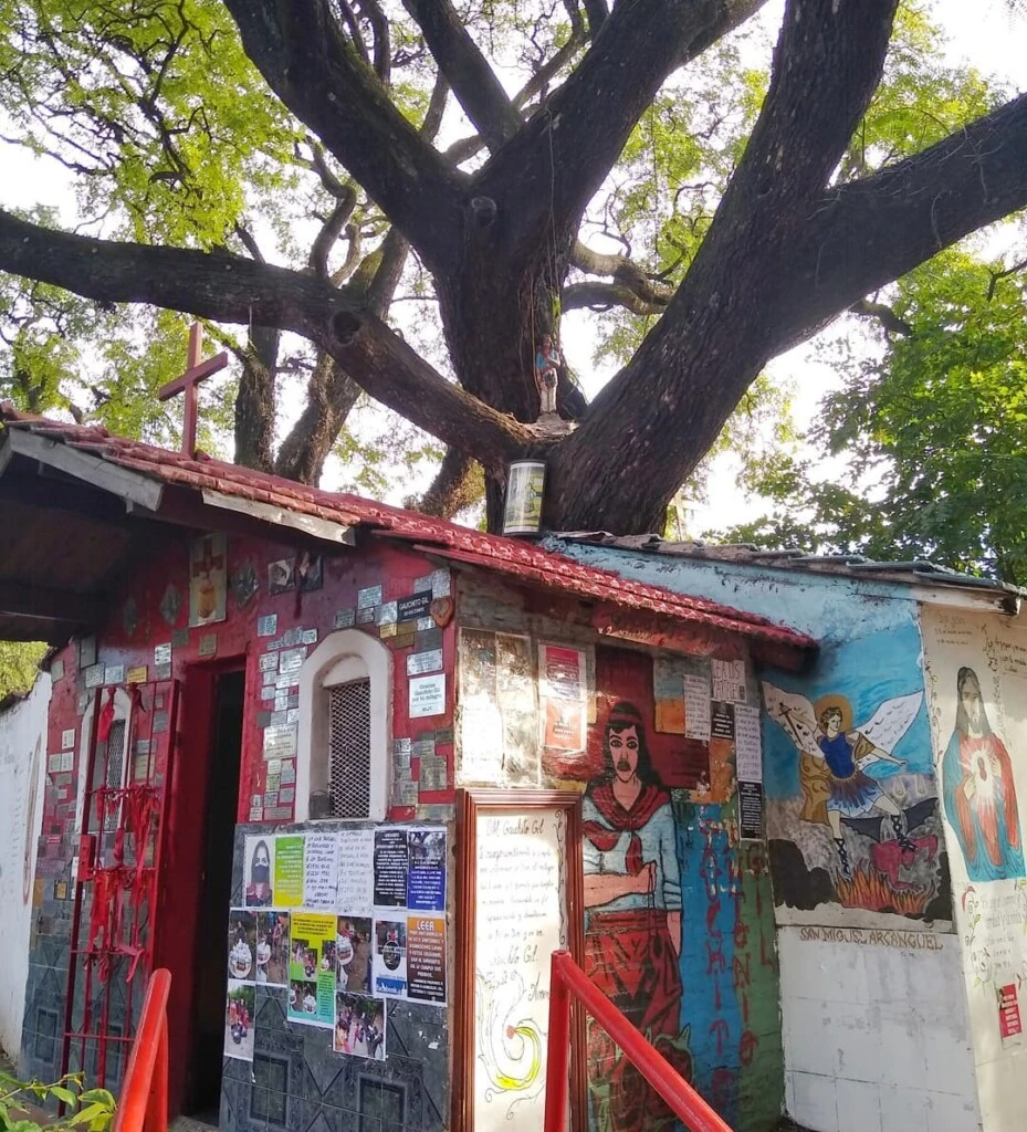Para encontrar el punto exacto donde estuvo Lola, hay que caminar por la vereda de la calle Guzmán, casi llegando a Concepción Arenal, y alzar la vista: es inconfundible. Construido al pie de un árbol añoso que le sirve de columna vertebral, el altar funciona como una pequeña "casita" sagrada a la intemperie.