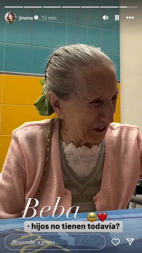 En el video que subió a sus redes, Jimena mostró en primerísimo primer plano la reacción de Beba al escuchar la feliz noticia. "¿Hijos no tienen todavía?", le había preguntado su abuela antes de recibir la sorpresa.