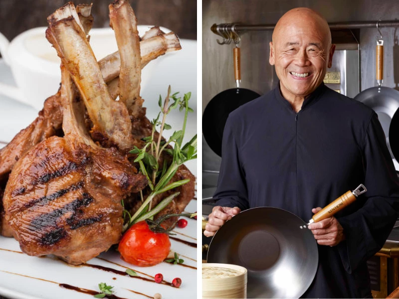 Costillar de cordero asado con adobo de estilo asiático será el plato a cargo del famoso chef chino-estadounidense Ken Hom, con el que planean que los invitados carnívoros se deleiten el próximo 6 de mayo.