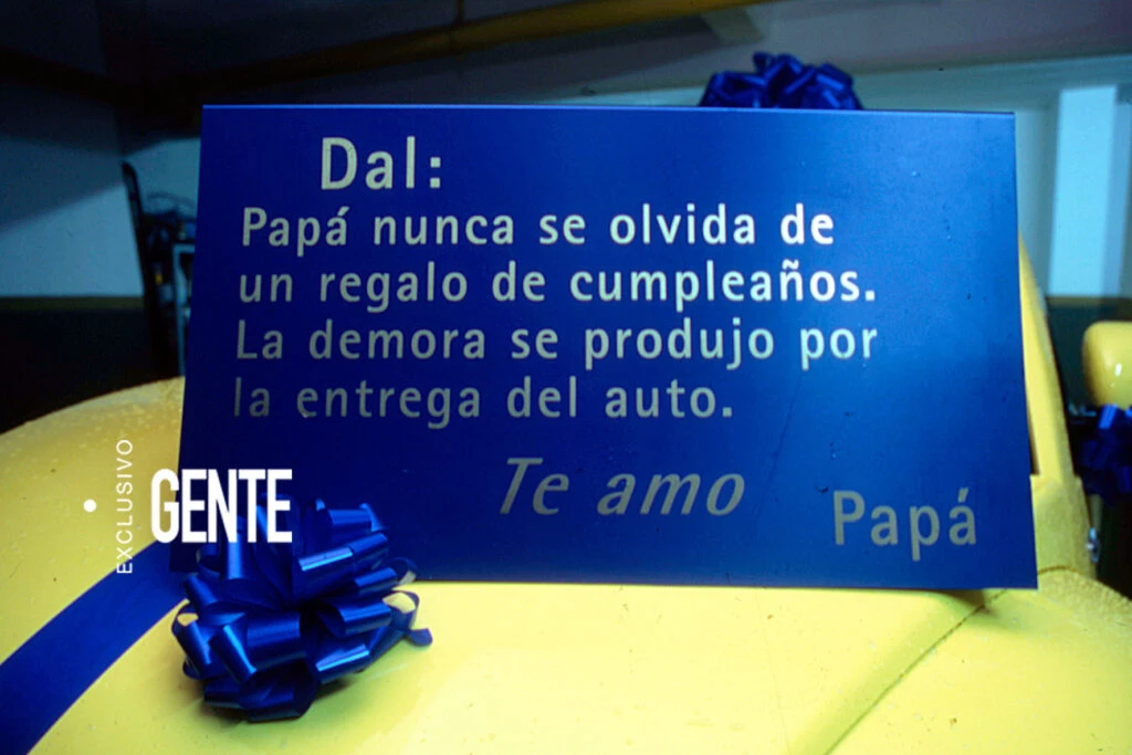 Estaba estacionado en el garaje del famoso edificio de La Habana y Segurola, de Villa Devoto, rodeado por un moño azul (para que combinara los colores de Boca Juniors) y acompañado por un prolijo cartel que señalaba: “Dal: Papá nunca se olvida de un regalo de cumpleaños. La demora se produjo por la entrega del auto. Papá”.
