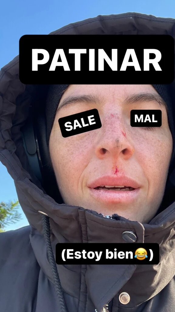 Allí la hija de Diego Maradona escribió junto a la foto: “Patinar sale mal”, revelando que el accidente que sufrió fue en la calle, cuando se movilizaba sobre ruedas.