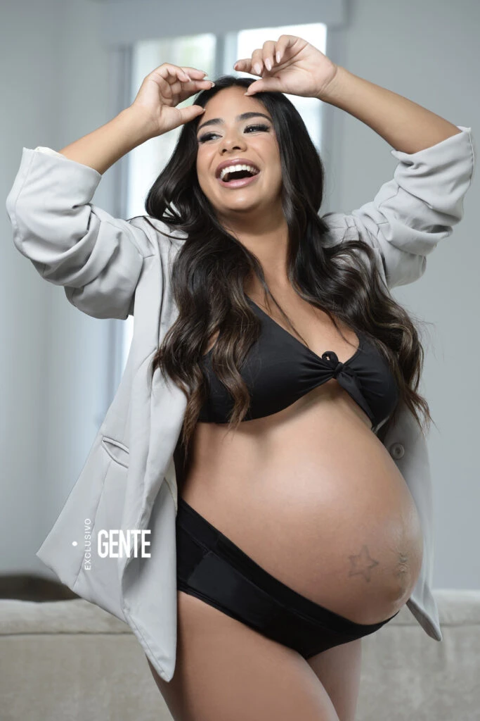 La ex Gran Hermano recibió al equipo de revista GENTE en su nueva casa, junto a su pareja, Thiago Medina y su mamá, ya que ambos la acompañan muy atentos en esta recta final del embarazo. Con una sonrisa radiante y la mirada iluminada por la felicidad que representa este momento en su vida, 'Pestañela' (como la apodaron los fans de Gran Hermano) disimula todo el cansancio de su enorme panza de dos y disfruta del shooting.