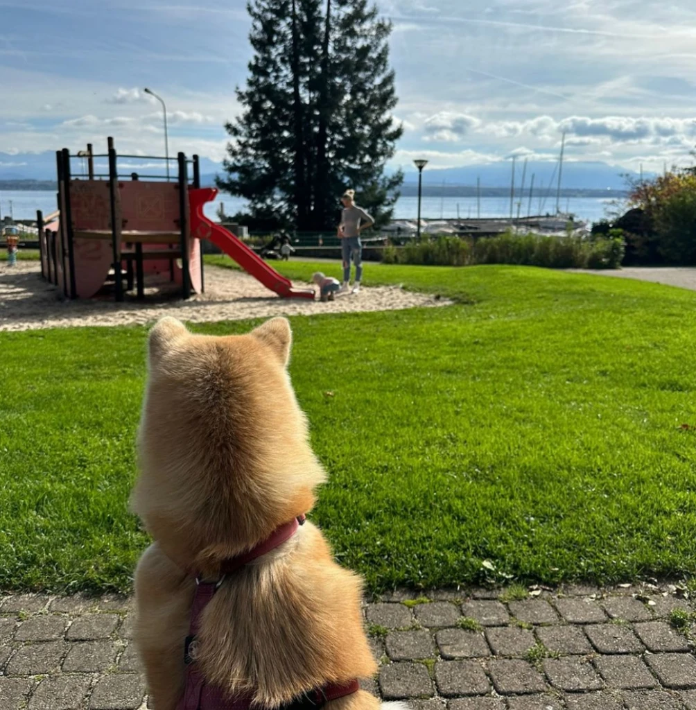 Kina, la mascota de la familia, también viajó con ellos y se le ve muy contenta disfrutando de explorar su nuevo hogar y como de costumbre, siendo la fiel guardaespaldas de la nena, con quien juega desde que era muy chiquita.