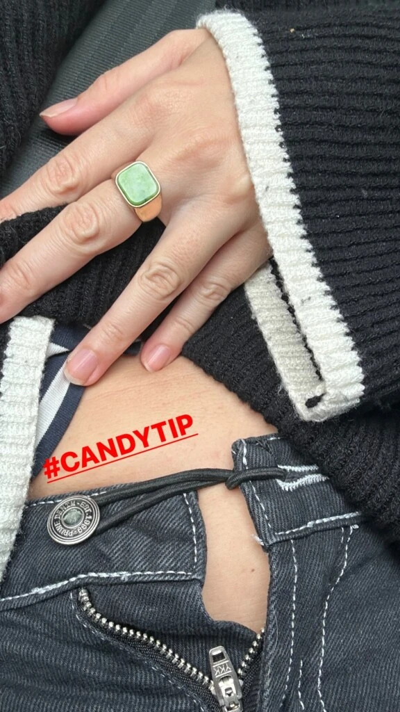 La noticia fue una primicia de LAM, pero con el correr de los días Cande Vetrano se ha animado a contar cómo transita esta nueva etapa de la vida. En una tierna foto de Instagram mostró un curioso consejo para las mamás embarazadas de atarse con una coleta de pelo los jeans para que el botón no les aprete la panza.
