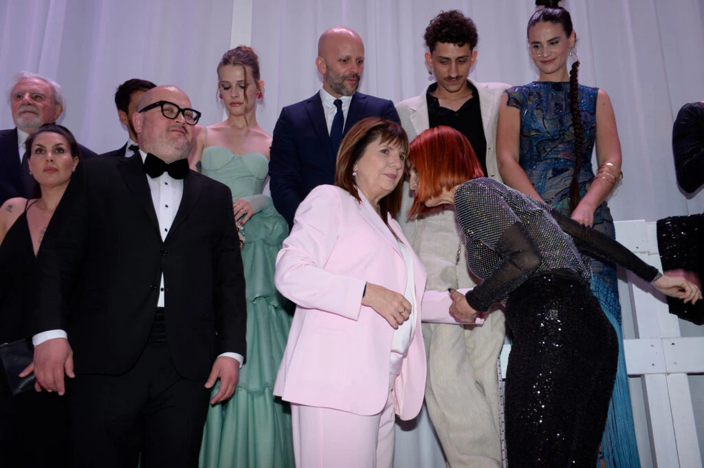 Otro de los cruces familiares que se generaron a lo largo de la noche fue el que protagonizaron Patricia Bullrich y Fabiana Cantilo, quienes celebraron sus logros en un efusivo abrazo en las gradas y poco antes de los flashes.